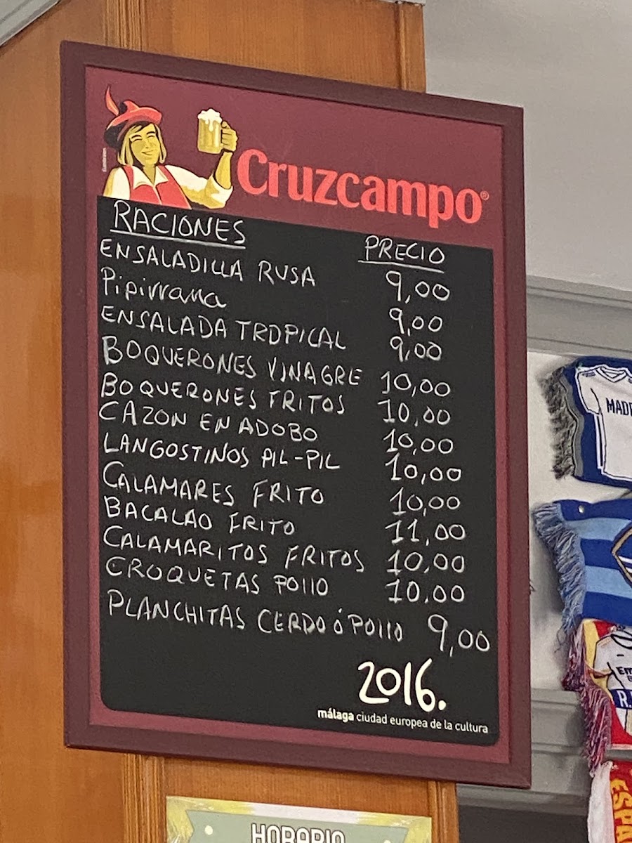 The menu at Cafeteria Marco y Fatima focuses primarily on traditional Spanish tapas, offering a variety of small plates suitable for sharing or light meals. In addition to tapas, the menu includes options for breakfast (desayuno), sandwiches, and a selection of main dishes available in full portion sizes. Beverages typically include coffee, wine, and other drinks that complement the light food offerings.